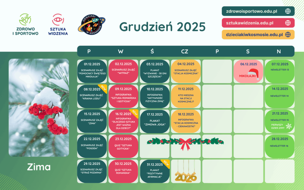 Grudzień to wyjątkowy czas pełen magii, radości i zimowych inspiracji! W tym miesiącu świętujemy Mikołajki oraz Boże Narodzenie, dlatego nie zabraknie tematycznych materiałów, które pomogą wprowadzić dzieci w świąteczny nastrój.