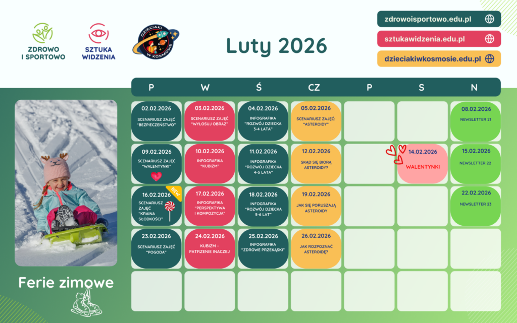 Witaj luty! Rozpoczynamy nowy miesiąc pełen ruchu i pozytywnej energii. W lutym świętujemy walentynki, dlatego przygotowaliśmy specjalny walentynkowy scenariusz zajęć sportowych, który łączy aktywność, zabawę i współpracę 💕
